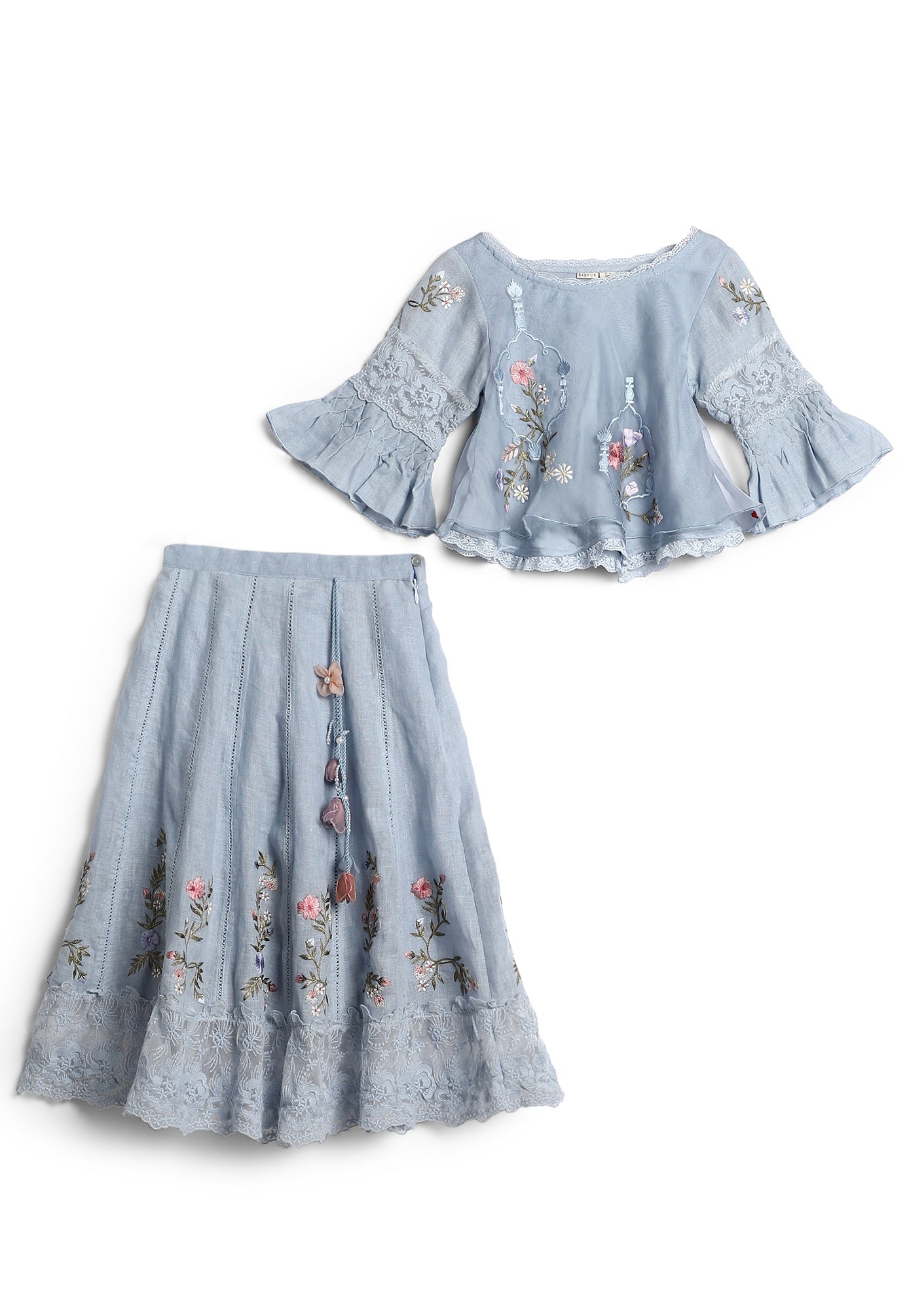 A medley of cultures and traditions, Window to Eden encapsulates the Mughals' wall art and Bohemian artistry, celebrating the grandeur of their artistic expressions with elaborate embroidery, pretty laces, flower tassels and a spread of frills. A sprinkle of pearls unites this entire collection in all its glory.