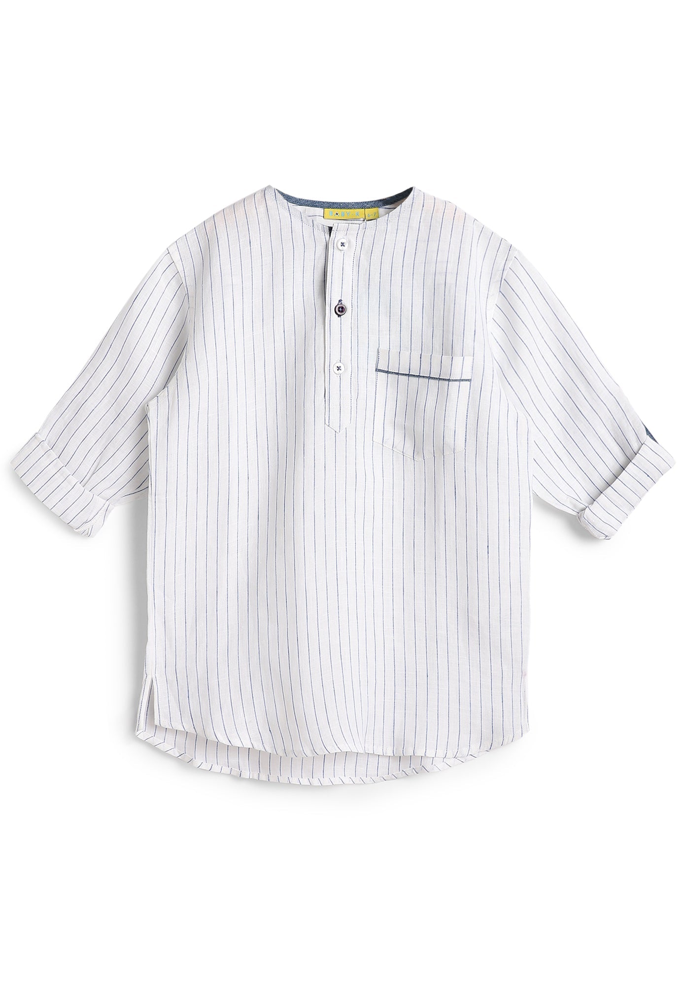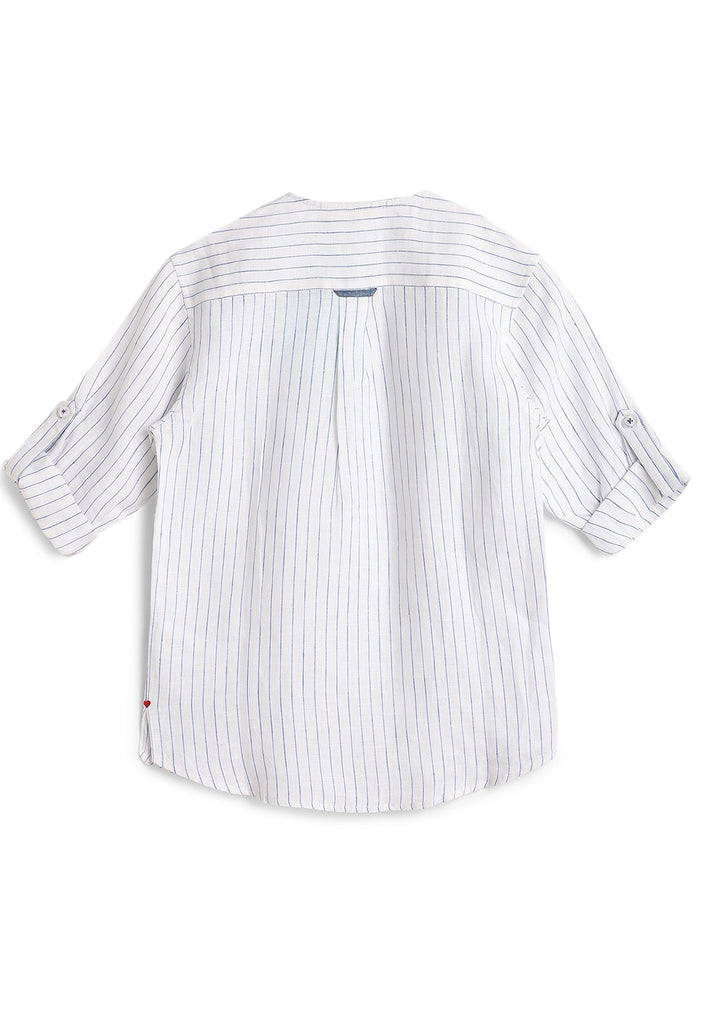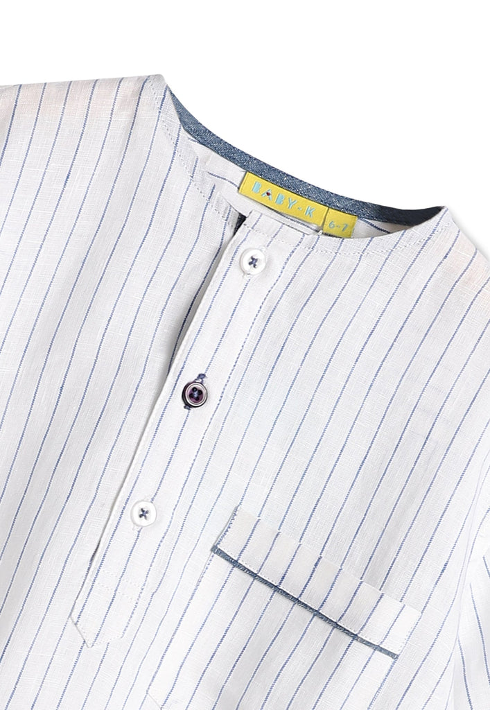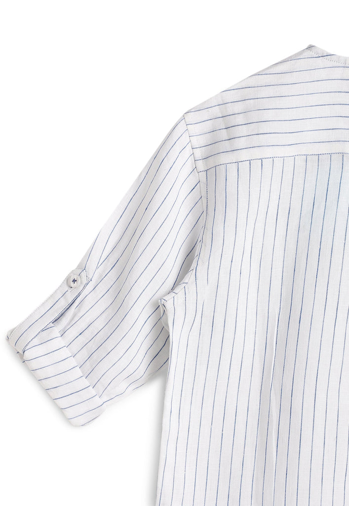 Designed for comfort and style this striped Classic Fit shirt is the perfect fit for any formal parties. Paired with Mildly flared denim linen essential pants.