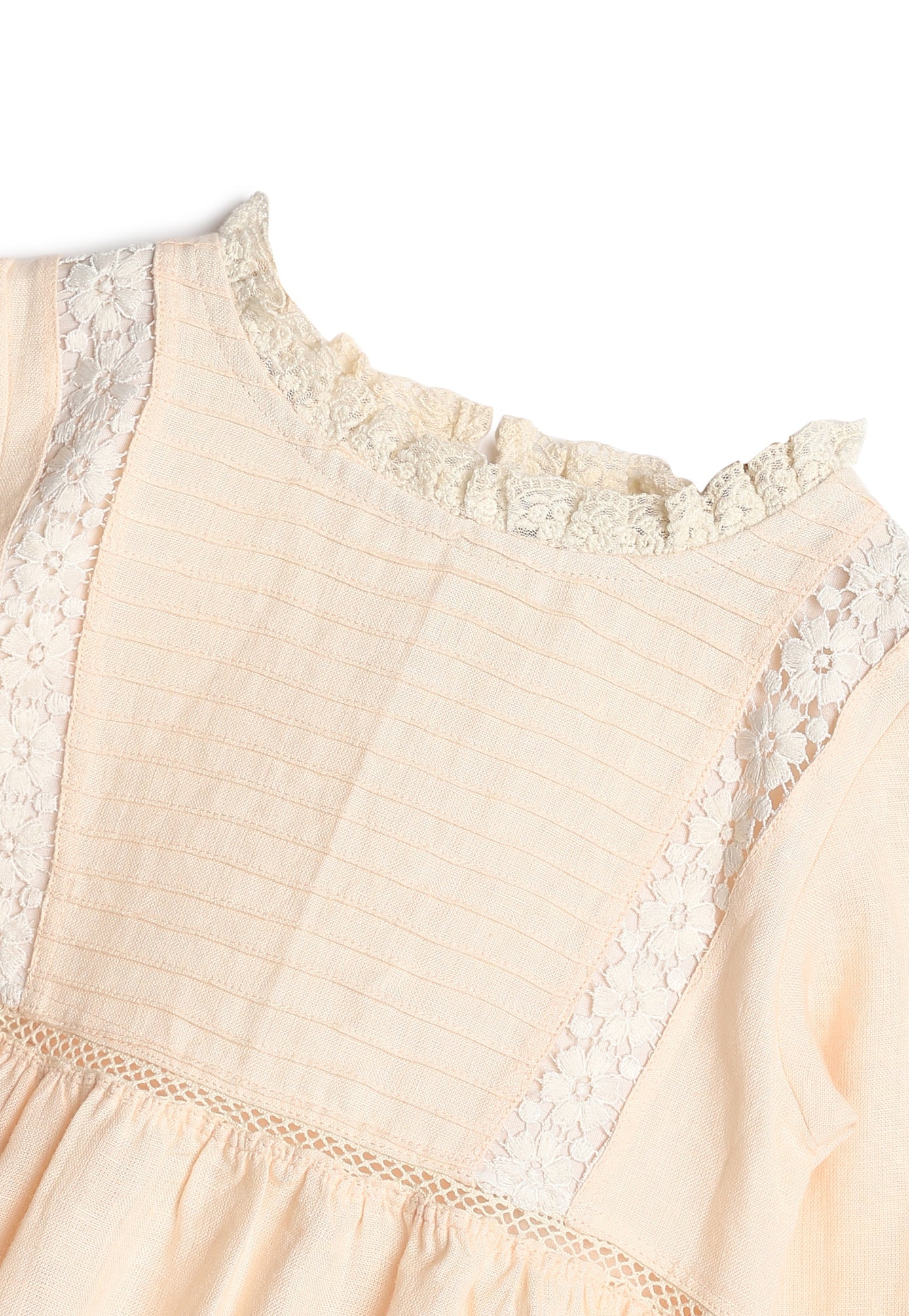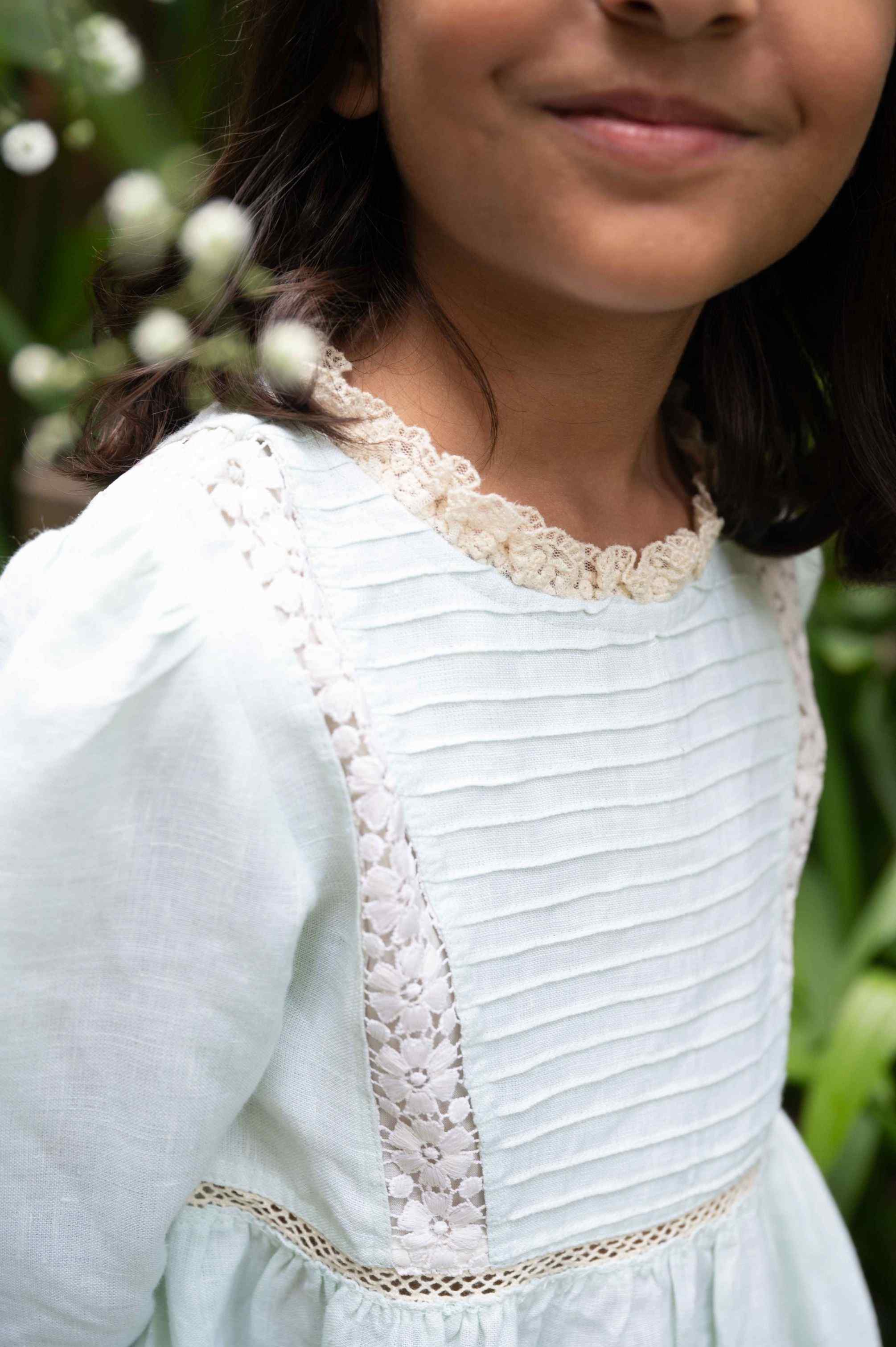 Victorian style dress with adorable lace details. The pin tuck detail adds an elegant touch to the garment making it a delight to look at.