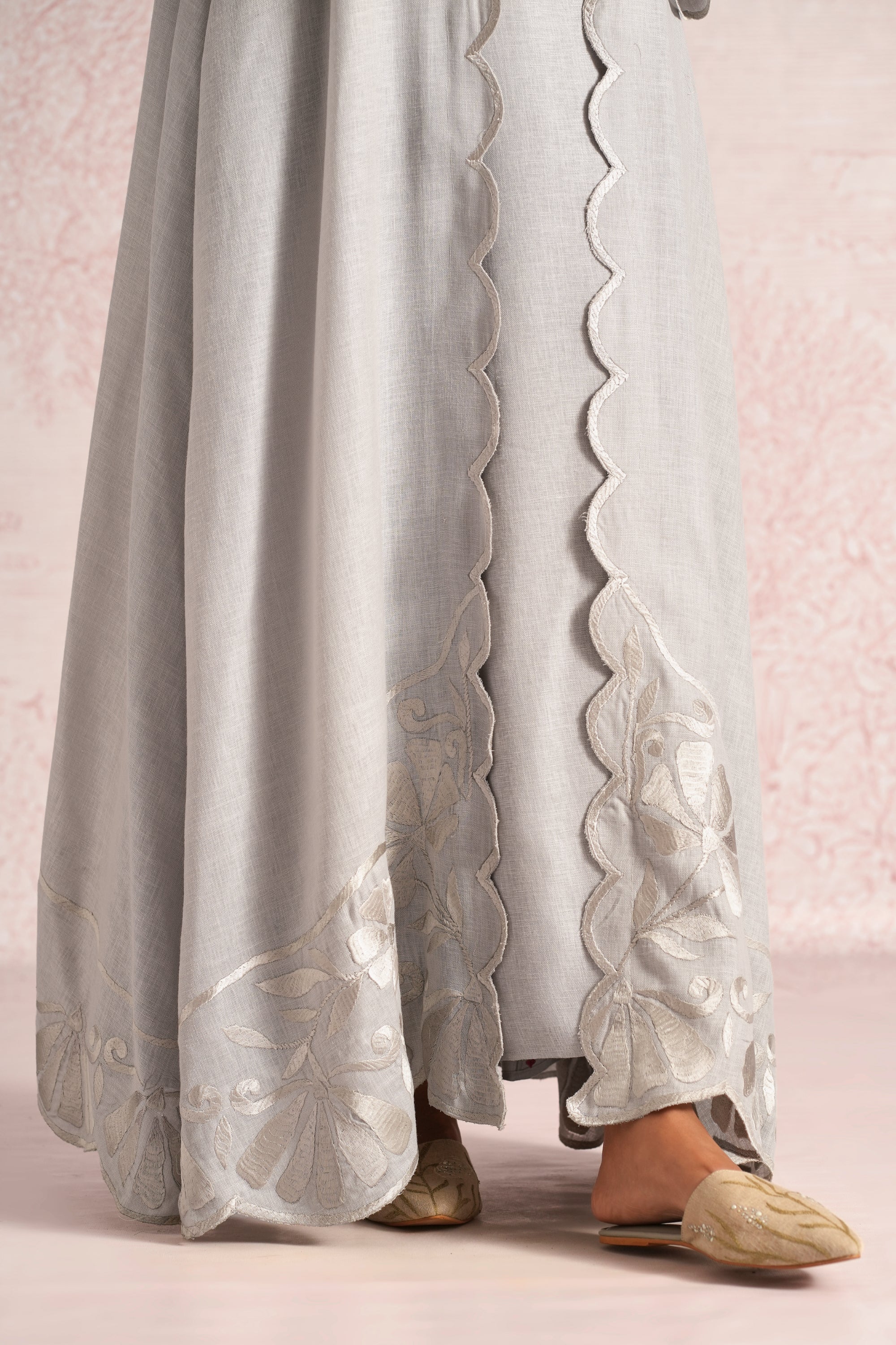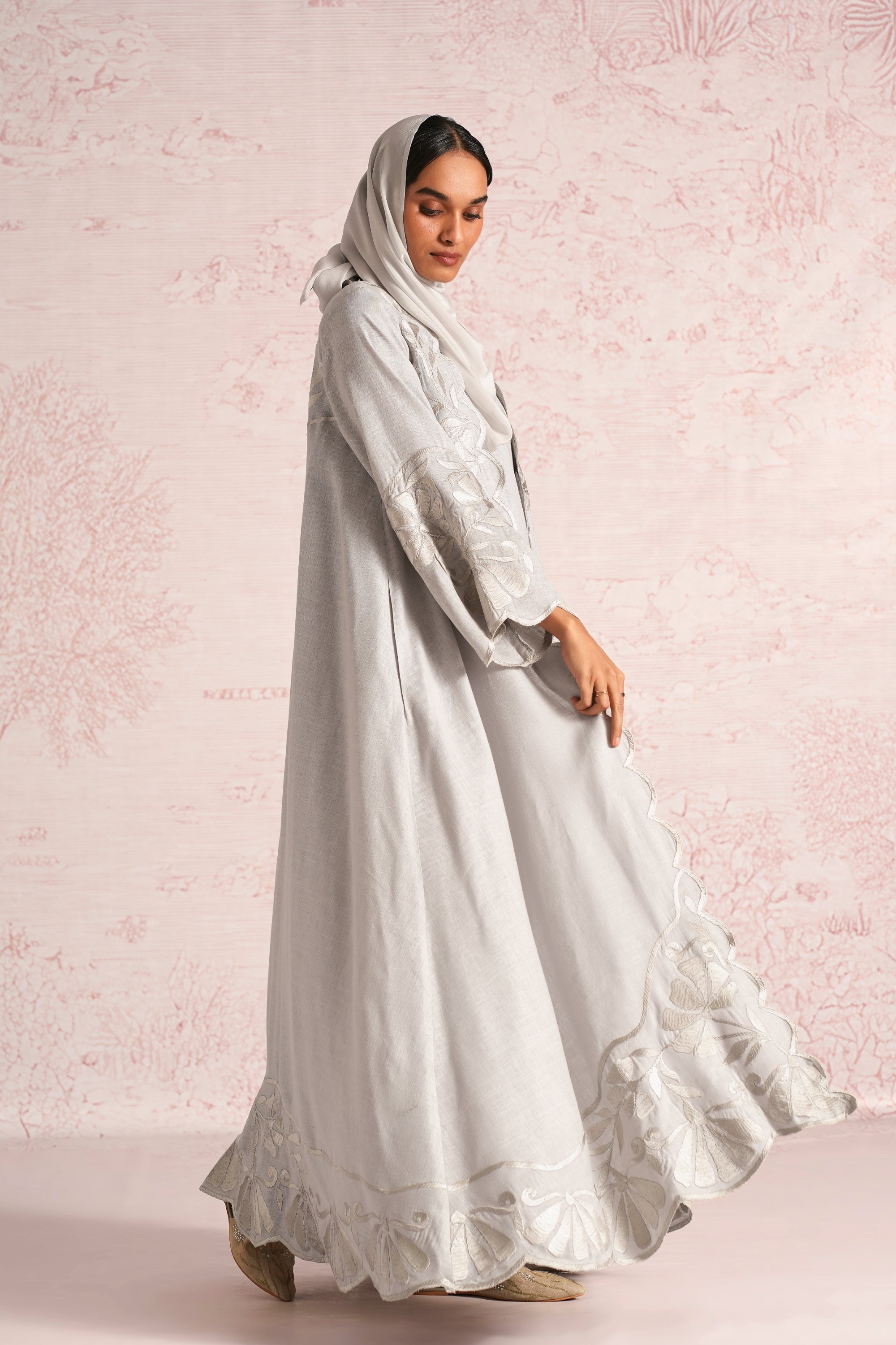 Step into the season with effortless grace in Snow Flower - a stunning collection inspired by the ethereal yet resilient White Crocus. Designed for tranquil moments under the sun for your next getaway, each piece is handcrafted from light weight breathable linen fabric, hand-embroidered with tone-on-tone placement embroidery- pervading seamlessly along the body of the fabric. A stylish testament to exquisite craftsmanship and breezy sophistication.