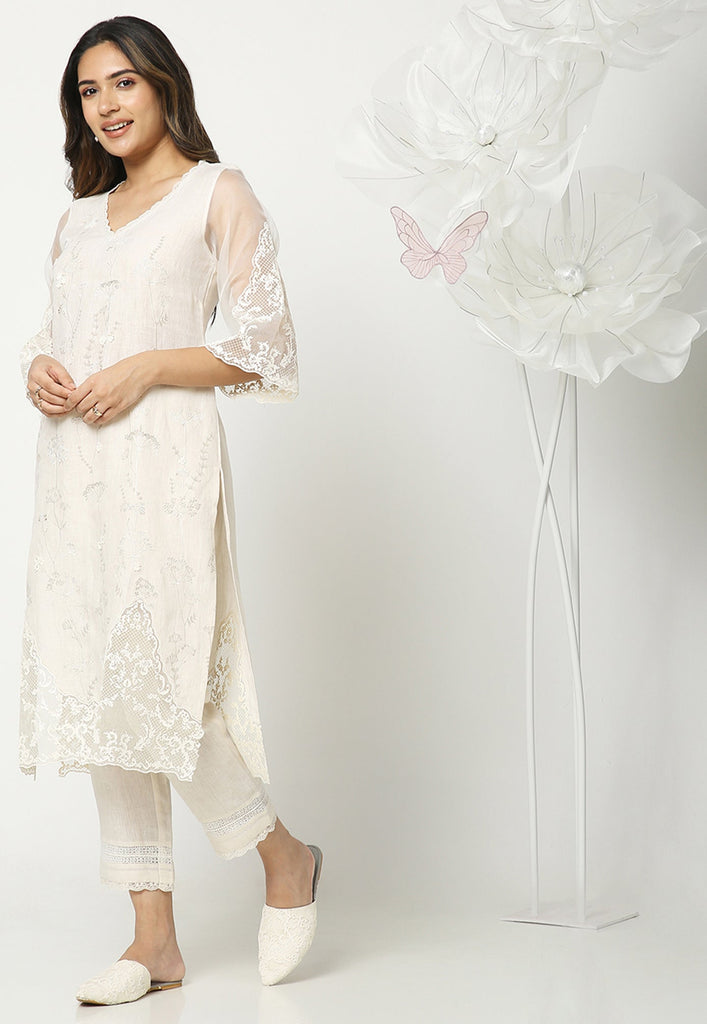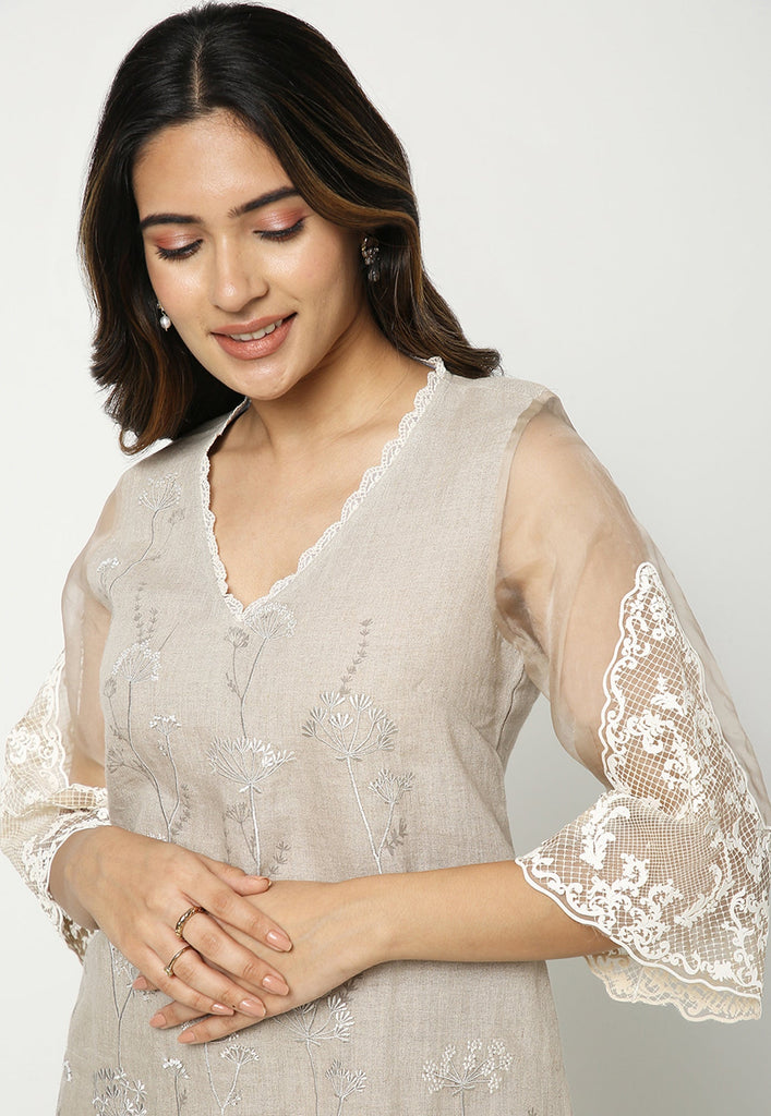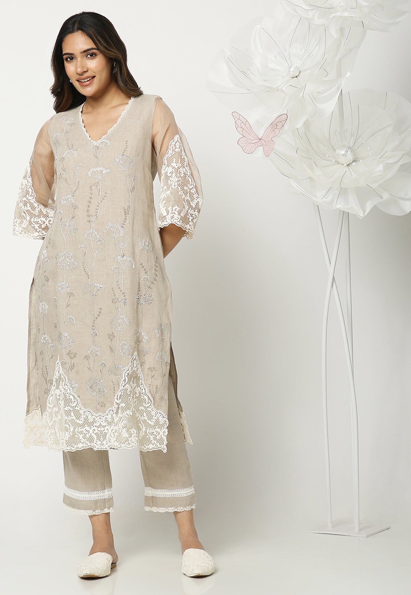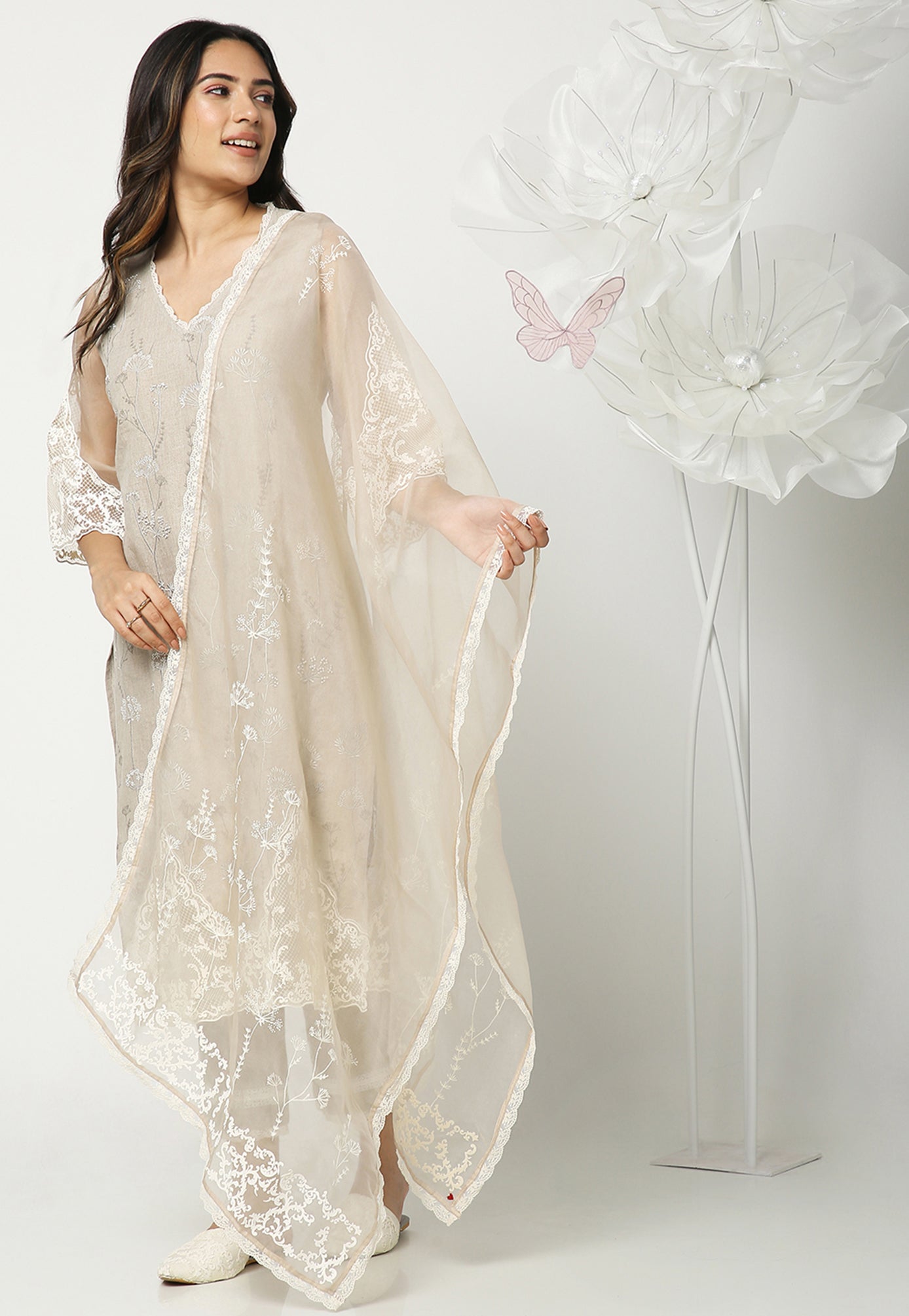 Inspired by the resilience of the dainty dandelions, we bring a thriving melange of grace and strength to this gorgeous collection. A serene 3D heat-press craft is an ode to tradition, embellished delicately on rich organza. Bringing these stunning outfits to life are little sprinkles of delicate pearls and beads intricately woven on soft linen.