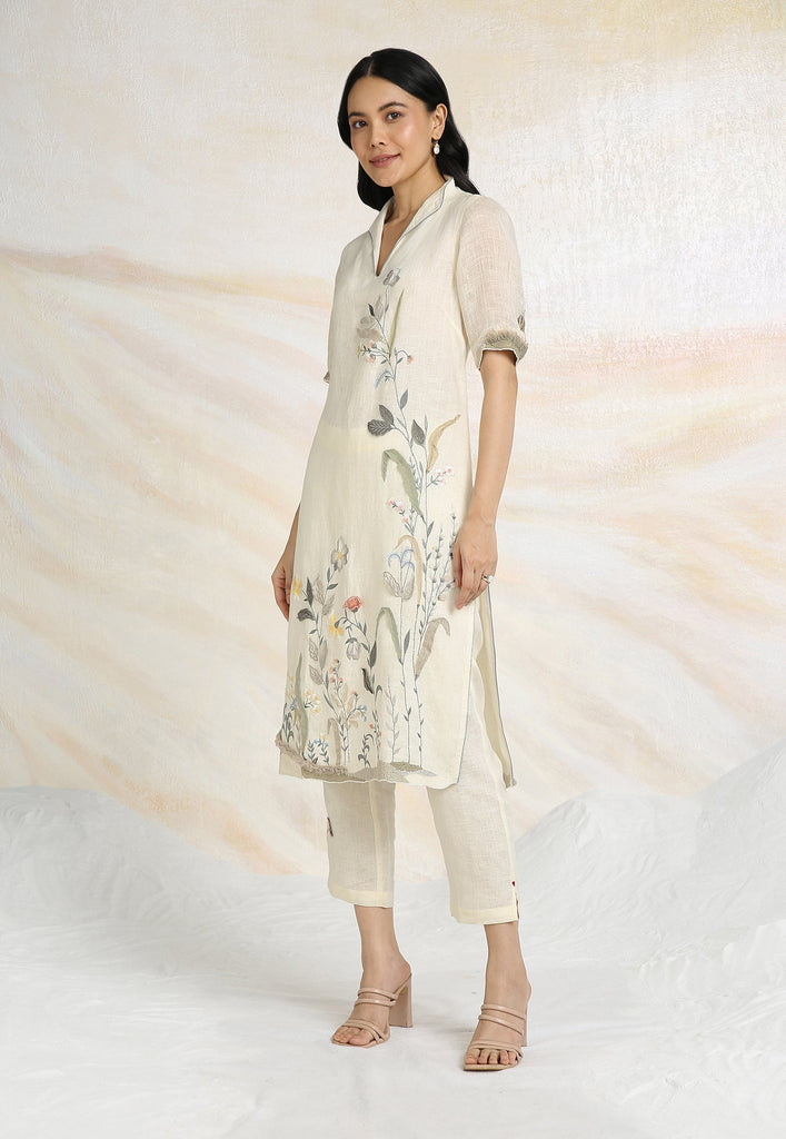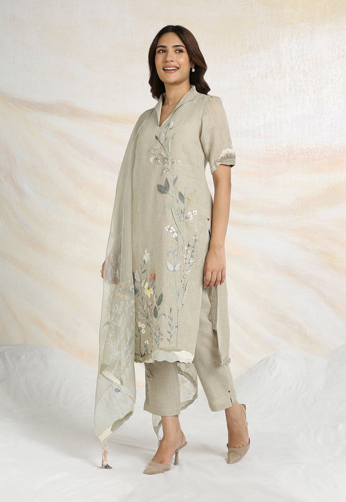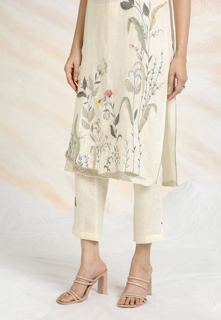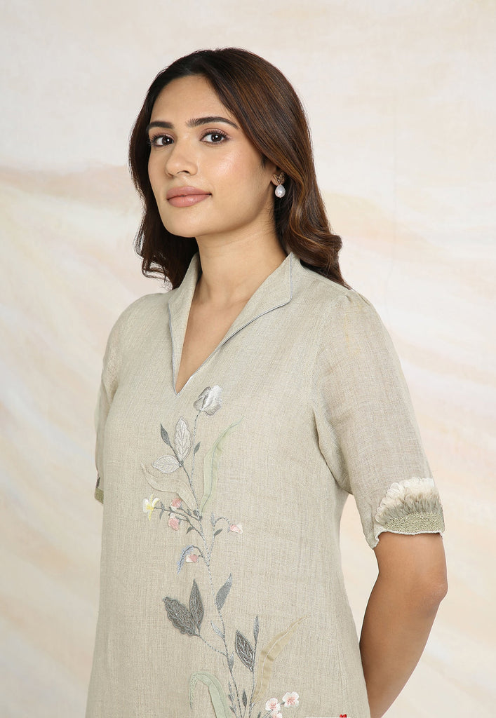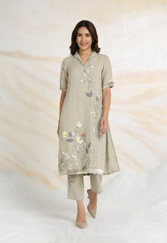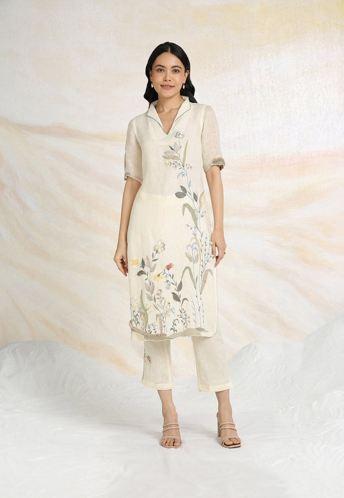 Embrace the charming wonder of the wilderness and stroll into our Prairie. A stunning work of art bringing the likeness of a captivating garden to garment. Each piece is immaculately hand-embroidered and handcrafted utilizing intricate layers of anchor thread and silk thread embroidery; adding depth with dimension to the piece while dainty elements of birds, butterflies and blooms unfurl in the forefront- individually sculpted and delicately appliquéd to the fabric. A final touch of ornate lace edging and handmade tassels finish the piece with panache bringing the outdoors in, just in time for a fresh new season.
