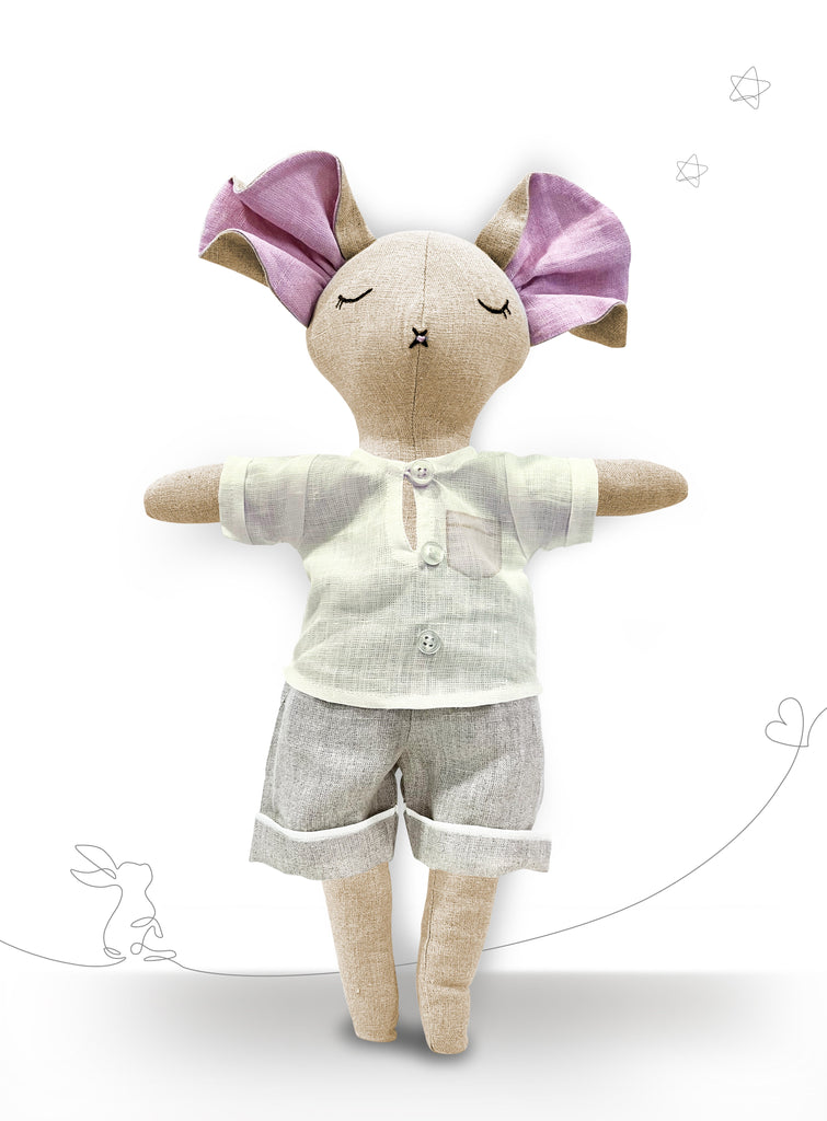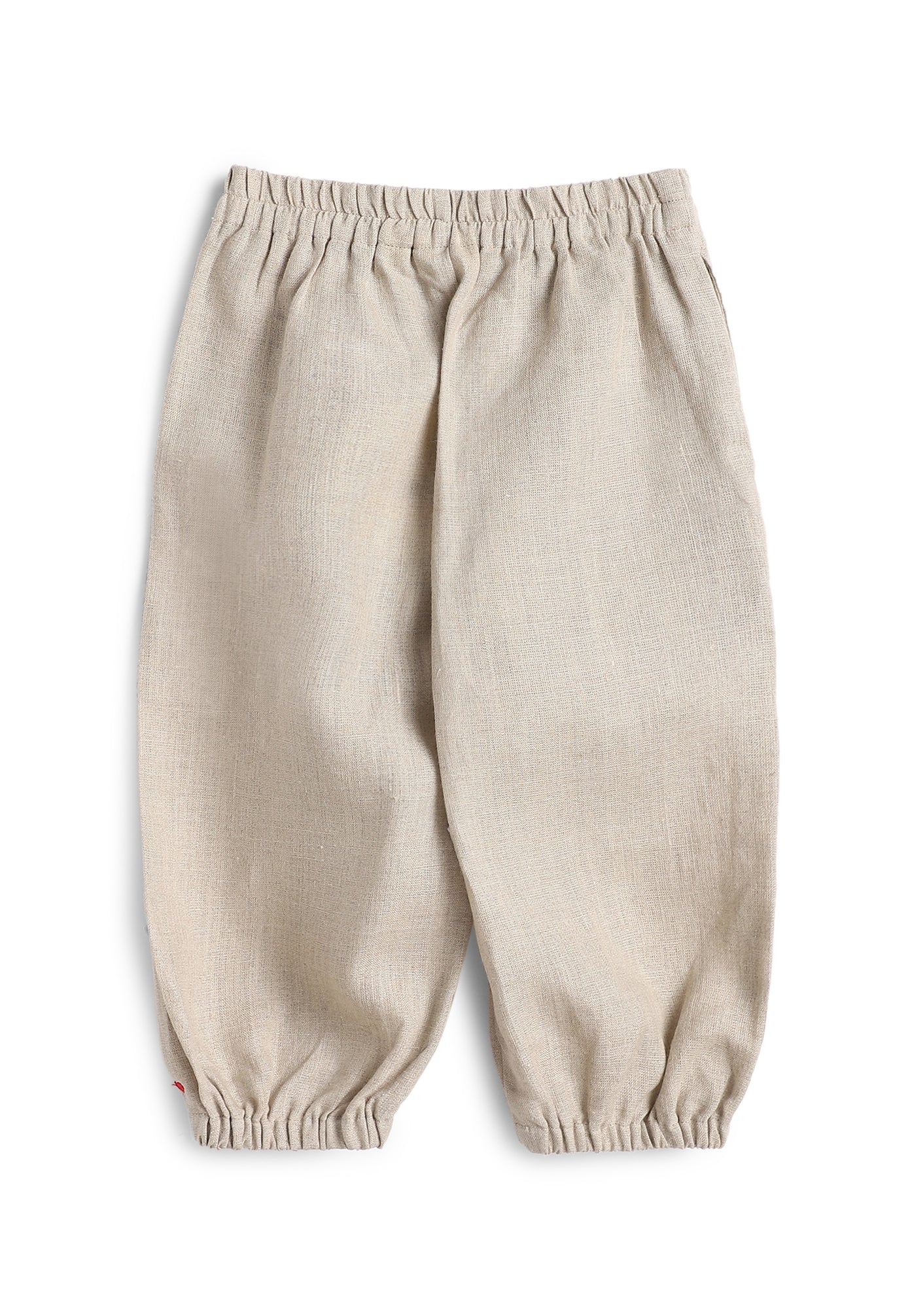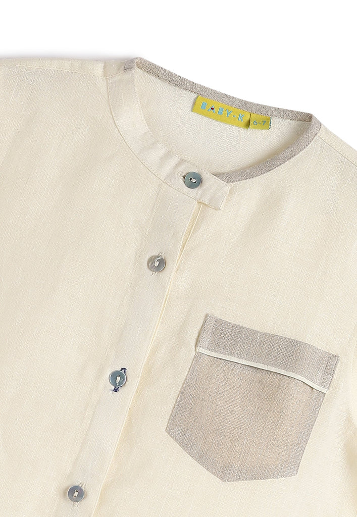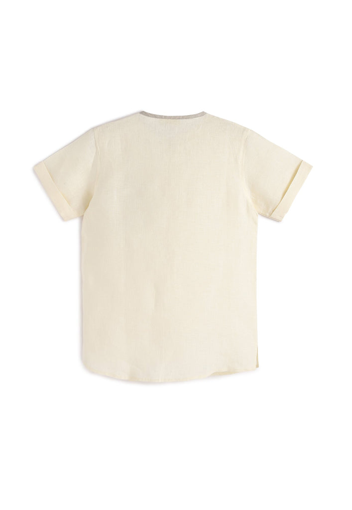 Short sleeve round neck shirt with a contrast pocket and interesting detailing, paired with adorable and comfy pants with elastic at the leg.